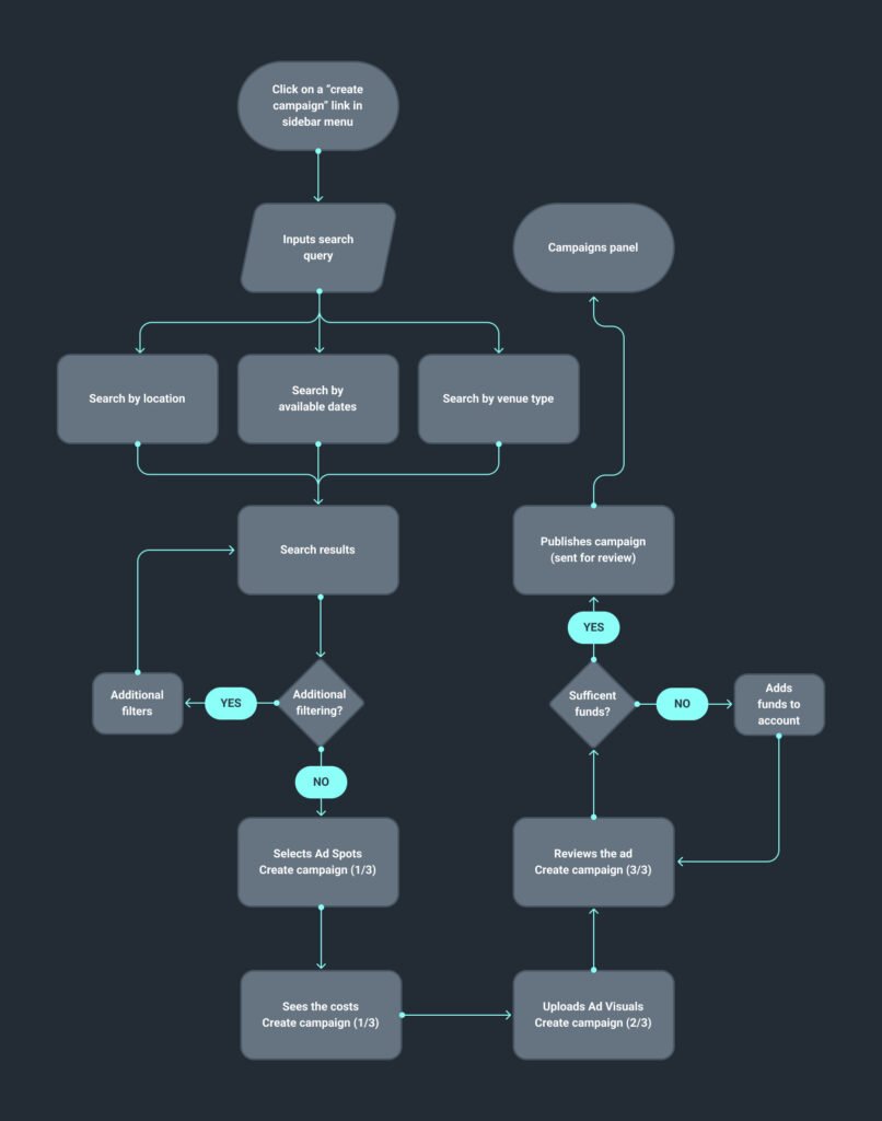 User testing confirmed a sub-3-minute end-to-end booking flow. Advertisers reported improved post-campaign decision-making as a direct result of the analytics. The MVP successfully onboarded the first cohort of paying clients, and the product, both web and native app, secured a $700K seed round.